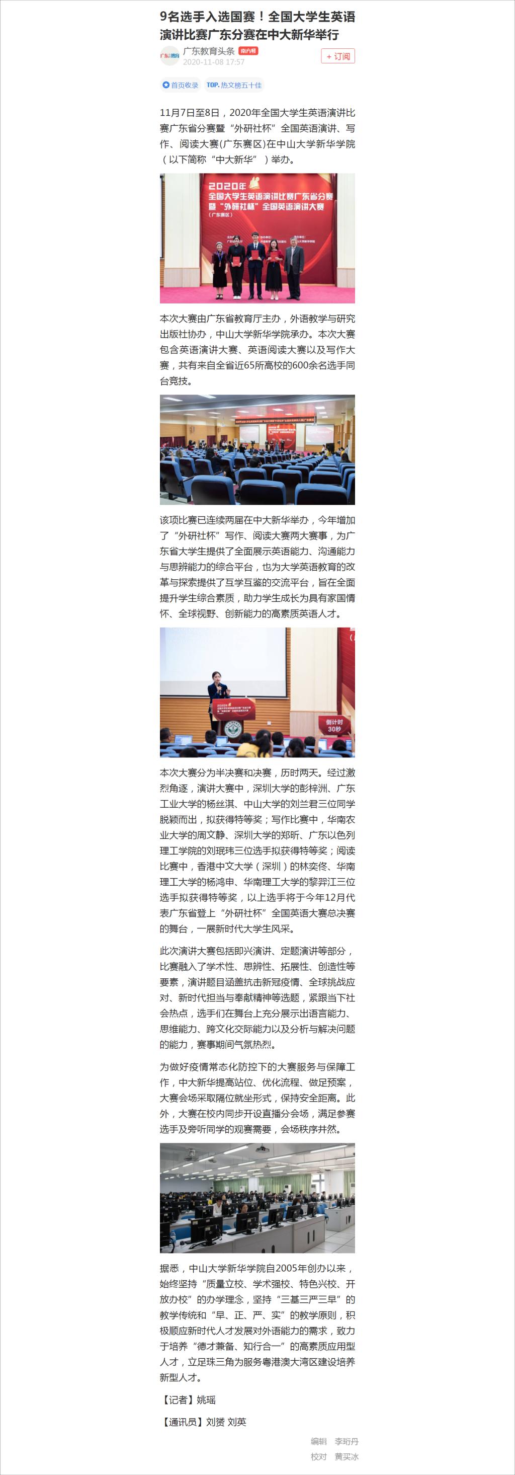 11月7日至8日,2020年全国大学生英语演讲比赛广东省分赛暨“外研社杯”全国英语演讲、写作、阅读大赛(广东赛区)在中山大学