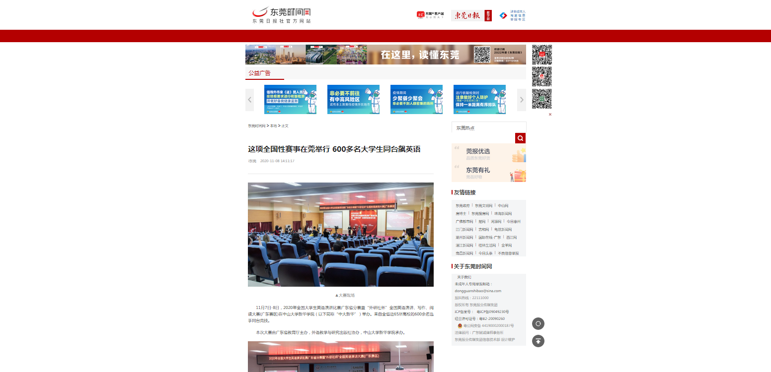 11月7日-8日,2020年全国大学生英语演讲比赛广东省分赛暨“外研社杯”全国英语演讲、写作、阅读大赛(广东赛区)在中山大学