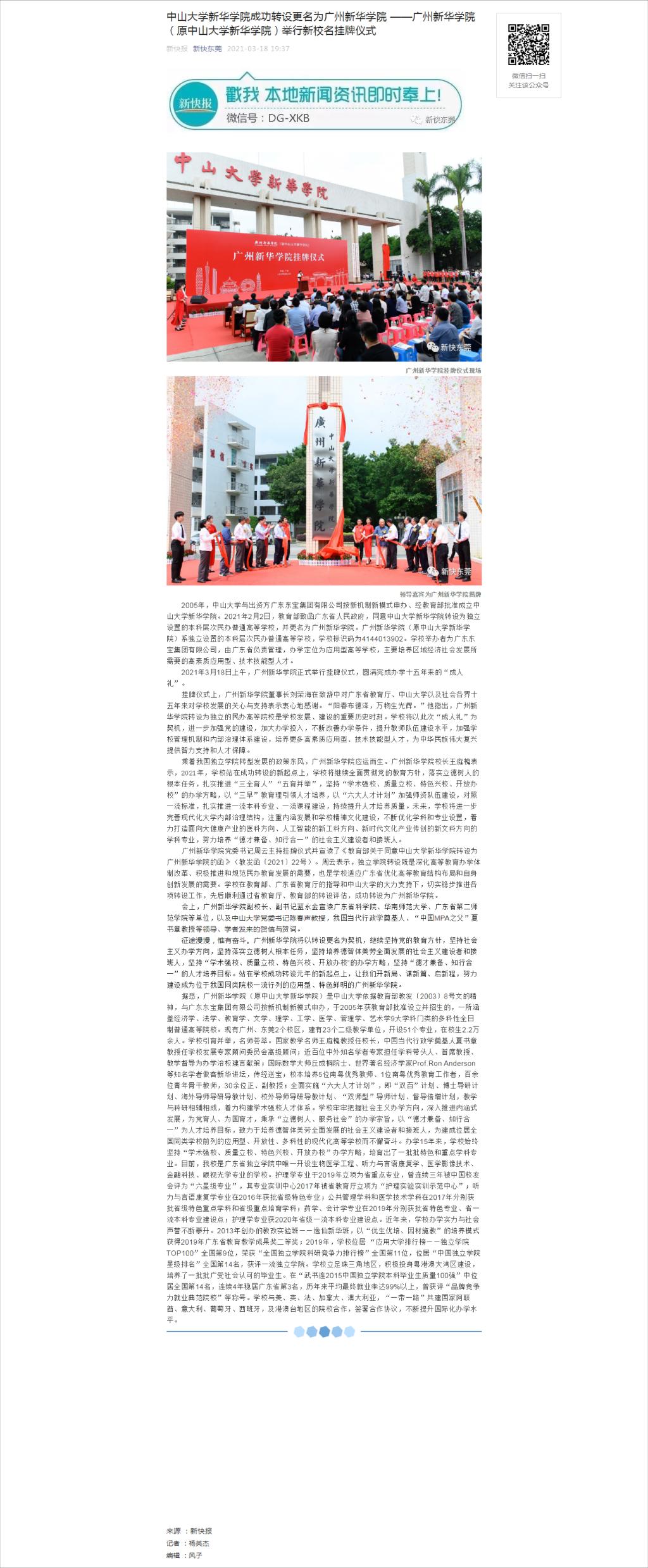的函》(教发函〔2021〕22号)。周云表示,独立学院转设既是深化高等教育办学体制改革、积极推进和规范民办教育发展的需要,也是学校适应广东省优化高等教育结构布局和自身创新发展的需要。学校在教育部、广东省教育厅的指导和中山大学的大力支持下,切实稳步推进各项转设工作,先后顺利通过省教育厅、教育部的转设评估,转设为
