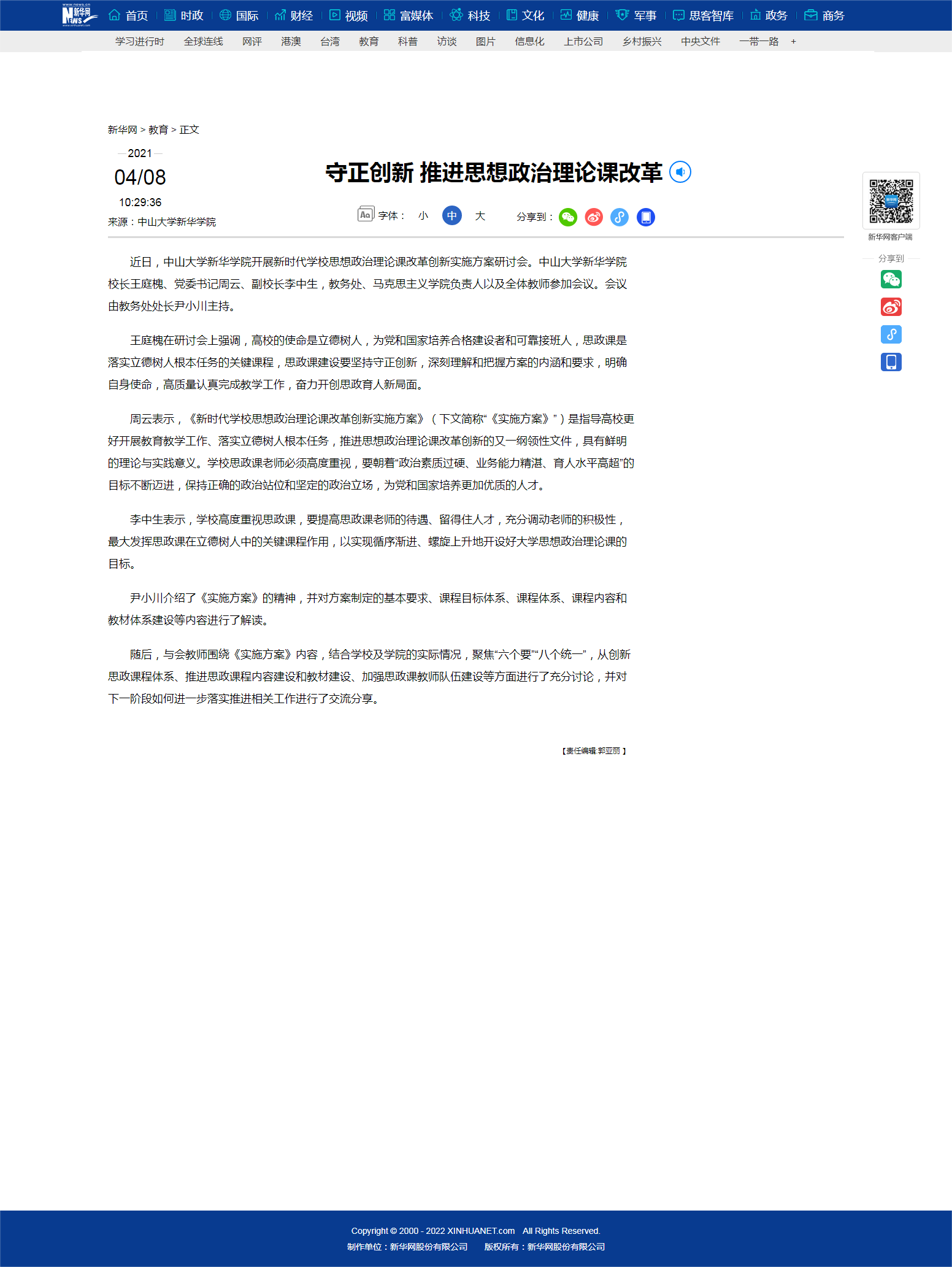 学院开展新时代学校思想政治理论课改革创新实施方案研讨会。中山大学