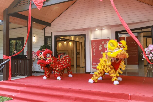 揭牌仪式上,刘婉莉(字霖霖)校长助理、许钦松主席共同为“霖霖书院”揭牌,“是立足境”画展正式开幕。