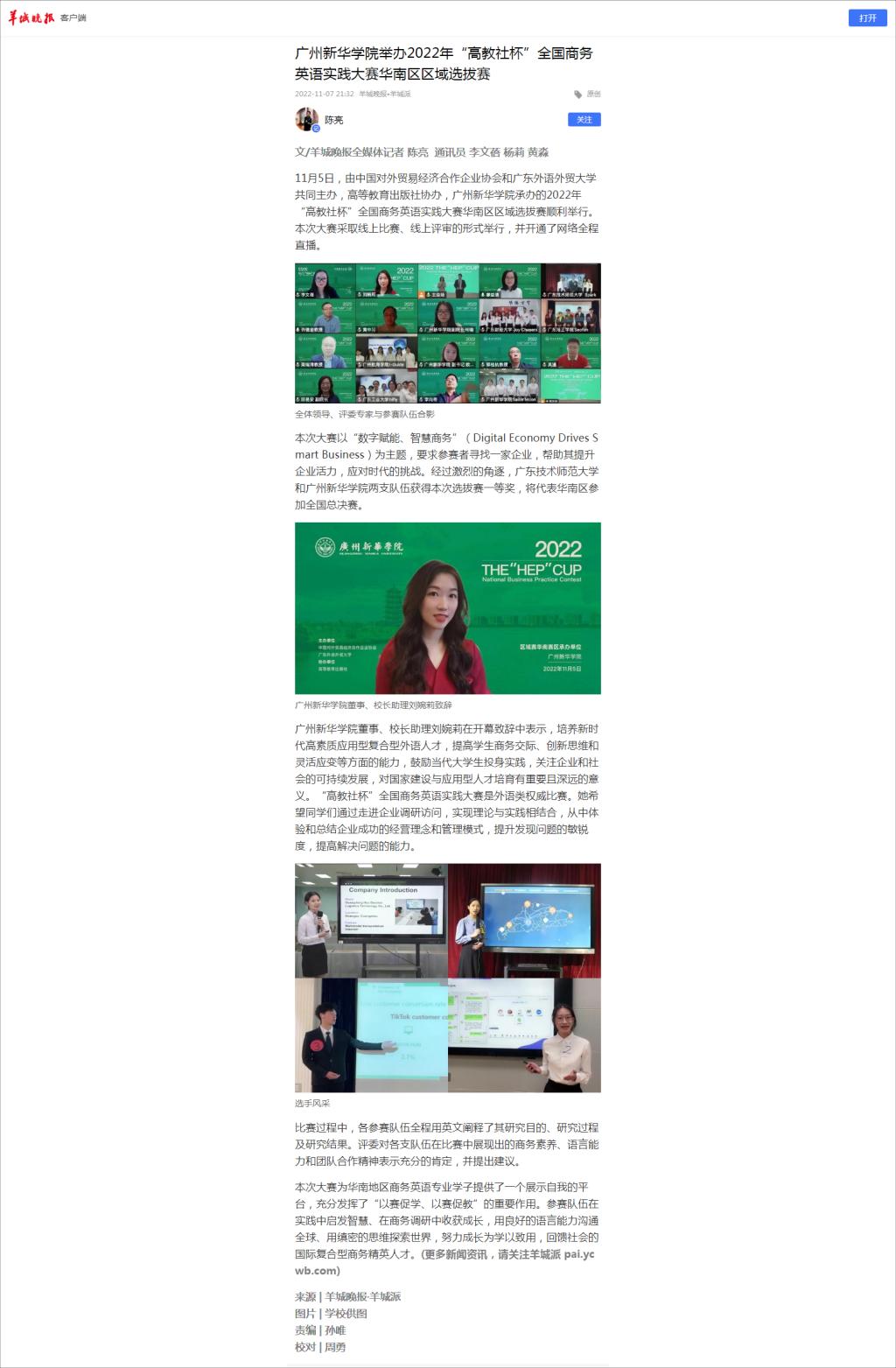 本次大赛为华南地区商务英语专业学子提供了一个展示自我的平台,充分发挥了“以赛促学、以赛促教”的重要作用。参赛队伍在实践中启发智慧、在商务调研中收获成长,用良好的语言能力沟通全球、用缜密的思维探索世界,努力成长为学以致用,回馈社会的国际复合型商务精英人才。(更多新闻资讯,请关注羊城派 pai.ycwb.com)