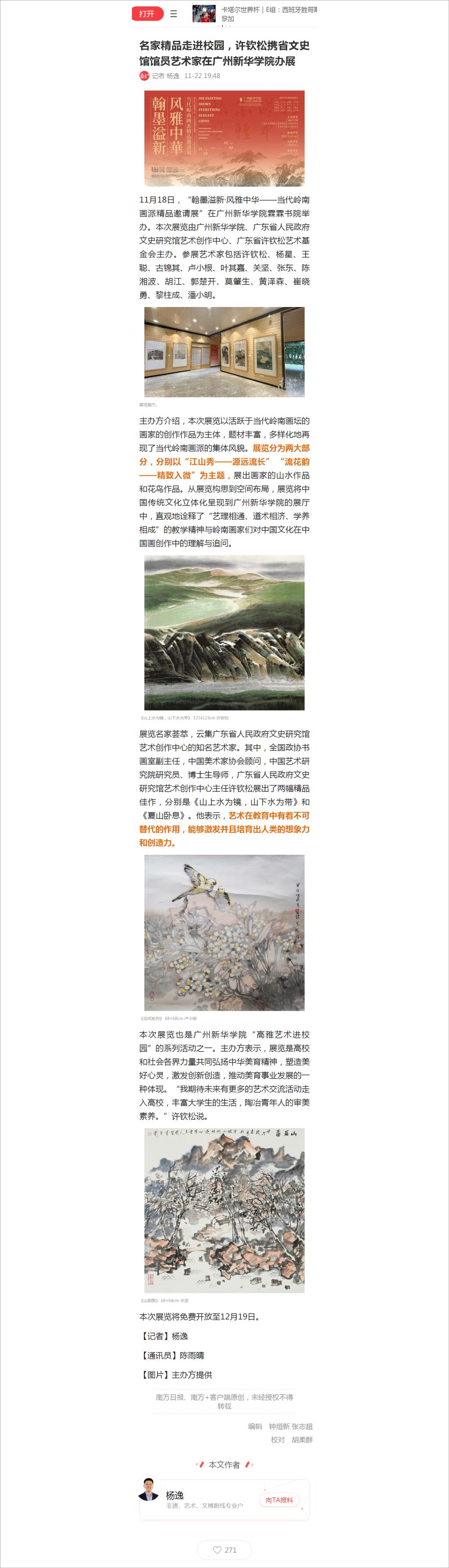 11月18日,“翰墨溢新·风雅中华——当代岭南画派精品邀请展”在