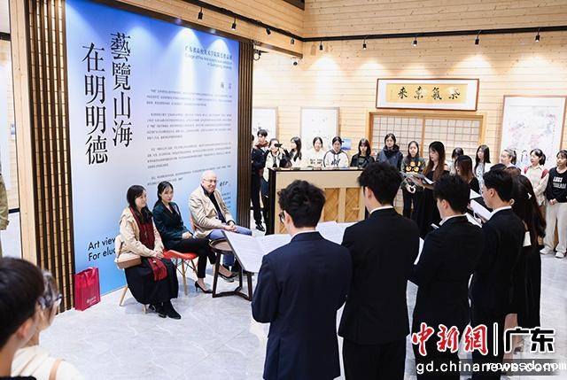 刘婉莉(霖霖)副校长陪同Ronald Wayne Anderson教授参观了近期在霖霖书院展出的“艺览山海 在明明德——广东省高校美术学院院长作品展”。刘婉莉(霖霖)副校长热情地介绍展出画作,Ronald Wayne Anderson教授表示赞叹。