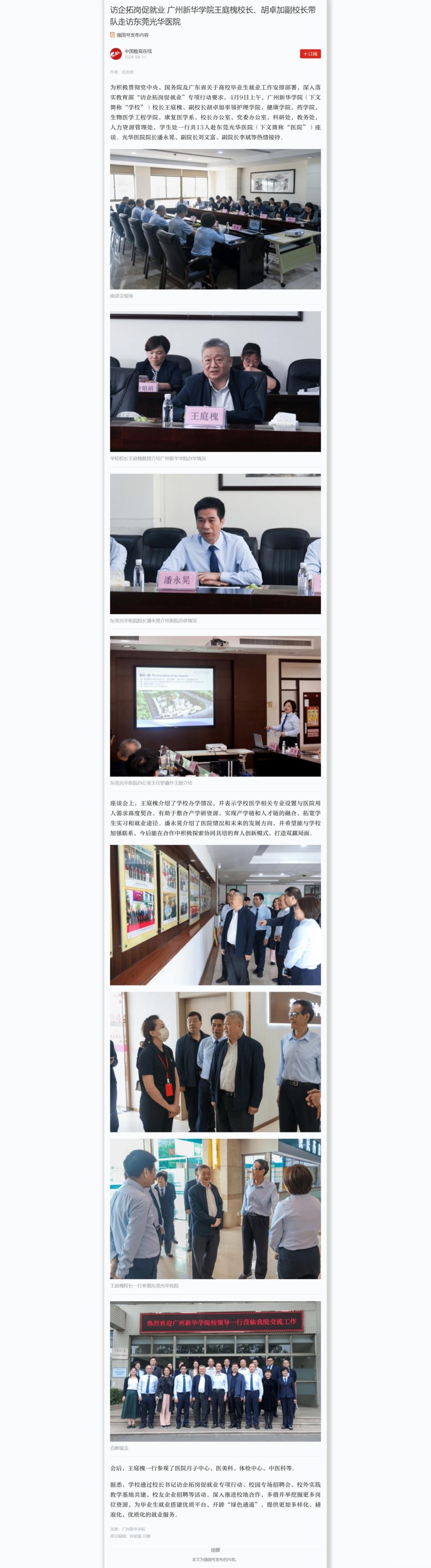 [学习强国]访企拓岗促就业 伟德app入口王庭槐校长、胡卓加副校长带队走访东莞光华医院