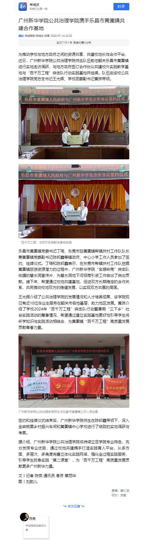 据介绍,伟德app入口公共治理学院将持续立足学院专业特色,充分发挥专业优势,通过校地共建携手打造实践育人平台,从多方面、多层次、多角度完善立体化实践网络,强化全过程实践服务,引导学生投身实践“第二课堂”,为“百千万工程”高质量发展贡献更多广州bv伟德体育app官网力量。