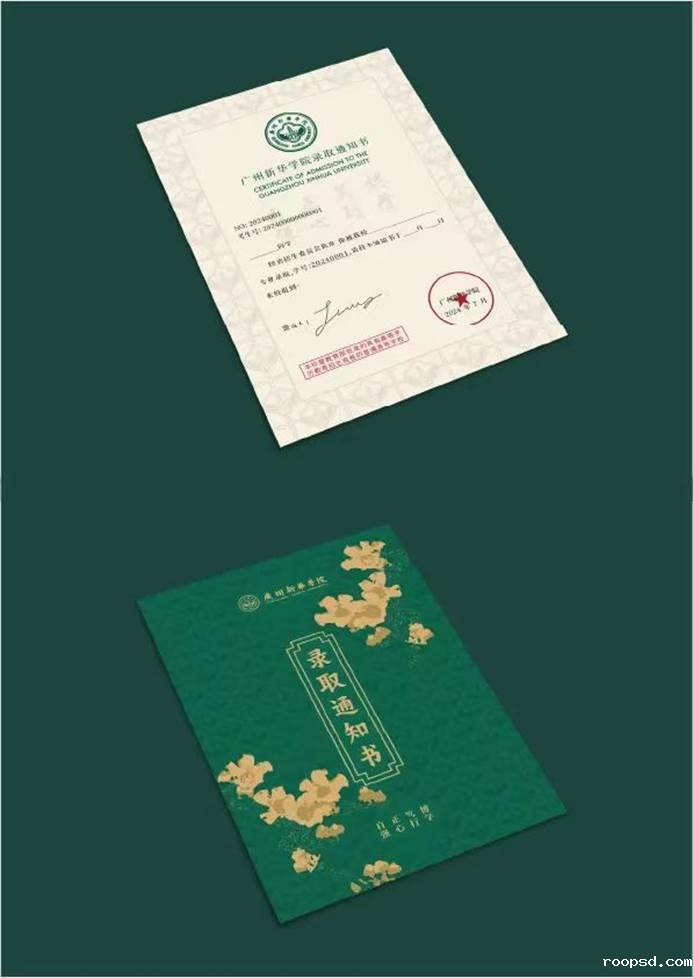 本届的录取通知书礼盒独具匠心,木盒材质温润厚重,绿金配色传统典雅,绿色象征着学校蓬勃的生机,金色点缀其间,在阳光下熠熠生辉。