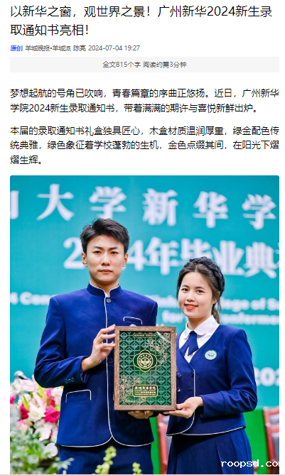 [羊城晚报]以bv伟德体育app官网之窗,观世界之景!广州bv伟德体育app官网2024新生录取通知书亮相!