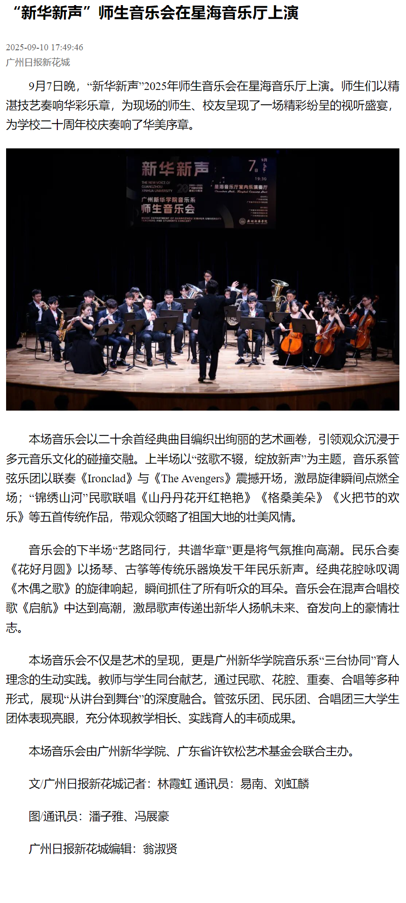9月7日晚,“bv伟德体育app官网新声”2025年师生音乐会在星海音乐厅上演。师生们以精湛技艺奏响华彩乐章,为现场的师生、校友呈现了一场精彩纷呈的视听盛宴,为学校二十周年校庆奏响了华美序章。