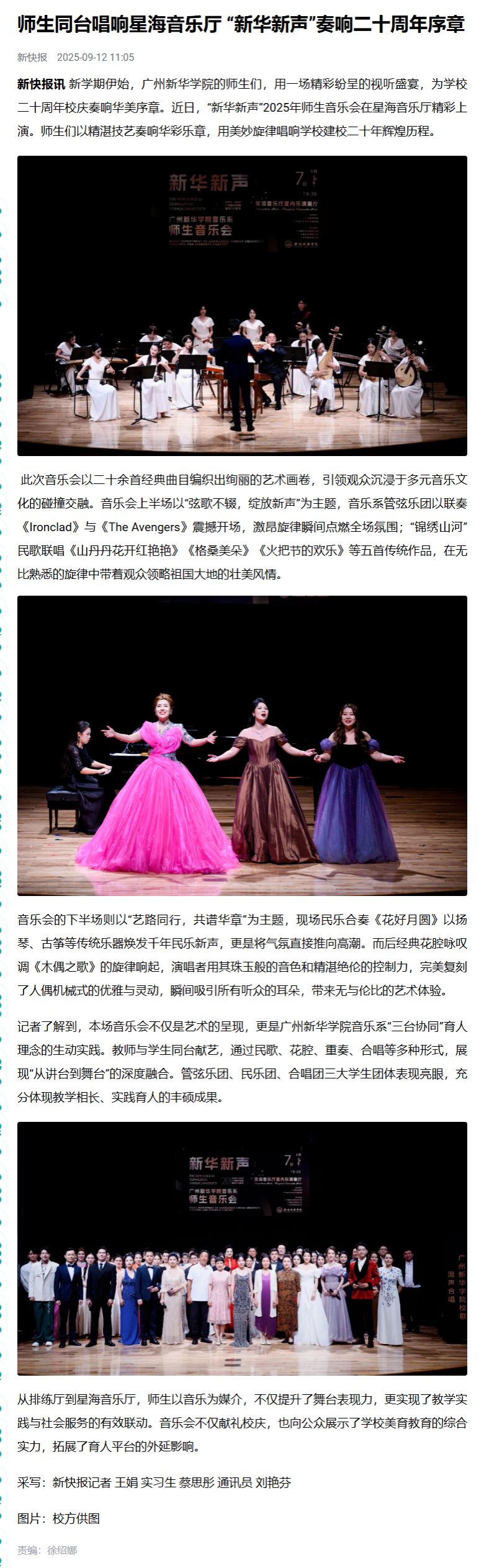 从排练厅到星海音乐厅,师生以音乐为媒介,不仅提升了舞台表现力,更实现了教学实践与社会服务的有效联动。音乐会不仅献礼校庆,也向公众展示了学校美育教育的综合实力,拓展了育人平台的外延影响。
