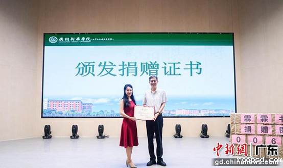 本次活动中,学校霖霖书院委托潮州市潮安区枫溪美德福利会向潮州市潮安区枫溪镇枫二小学捐赠书籍1000册。李斌向活动发起人刘婉莉(霖霖)颁发捐赠证书并献花,表达诚挚的谢意。现场响起热烈掌声。