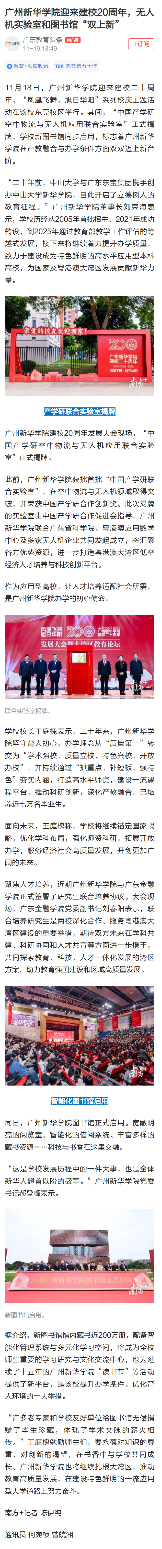 迎来建校二十周年,“凤凰飞舞,旭日华阳”系列校庆主题活动在该校东莞校区举行。其间,“中国产学研空中物流与无人机应用联合实验室”正式揭牌,学校新图书馆同步启用,标志着