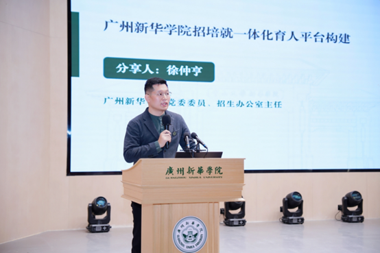 招培就一体化育人平台的构建”作主题分享。他向参会嘉宾系统介绍了近年招生录取情况、学校人才培养特色及人才培养成效。他表示,学校坚持以“招—培—就”深度联动为核心纽带,紧密围绕“立足湾区、服务广东、辐射全国”的服务定位及“德才兼备、知行合一”高素质应用型人才培养目标,在传承特色育人经验的同时,构建起了全链条协调育人体系,以优异的育人答卷向同类领先的一流应用型高校目标坚实迈进。