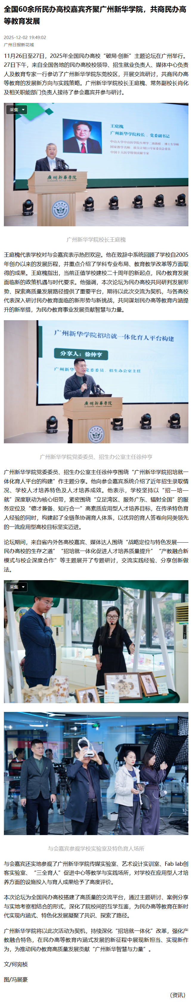 将以此次活动为契机,持续深化“招培就一体化”改革,强化产教融合特色,在民办高等教育内涵式发展的新征程中展现新担当、实现新作为,为推动民办教育高质量发展贡献“广州