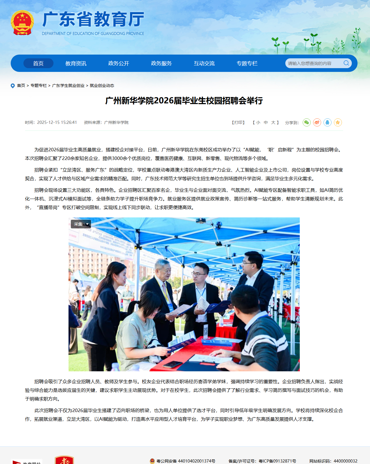 在东莞校区成功举办了以“AI赋能,‘职’启新程”为主题的校园招聘会。本次招聘会汇聚了220余家知名企业,提供3000余个优质岗位,覆盖医药健康、互联网、新零售、现代物流等多个领域。