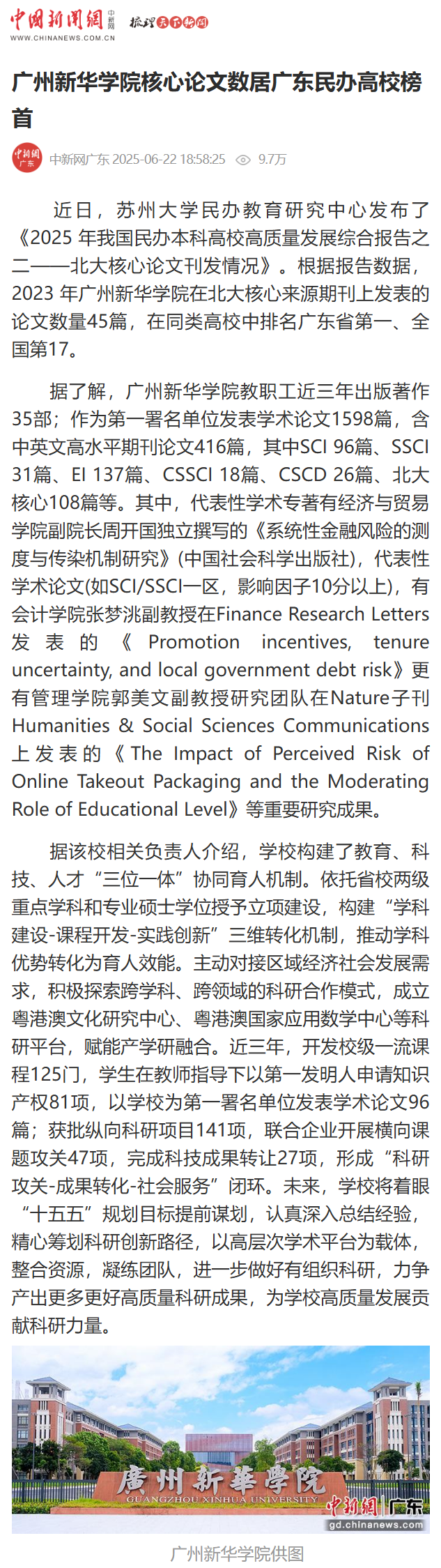 在北大核心来源期刊上发表的论文数量45篇,在同类高校中排名广东省第一、全国第17。