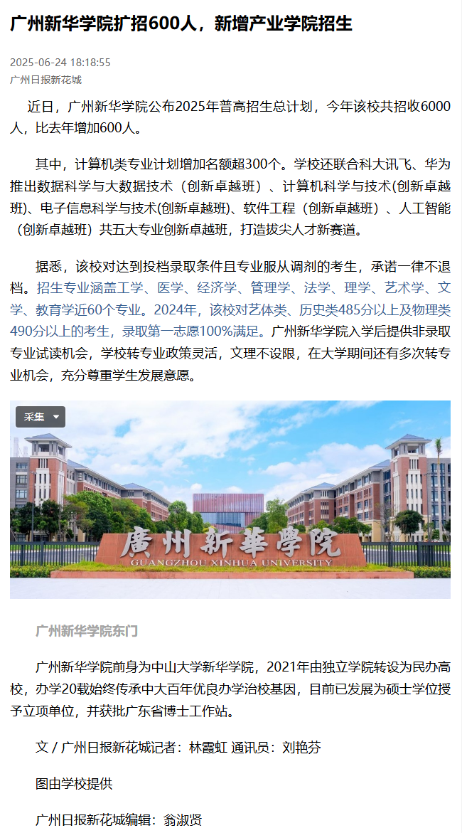 公布2025年普高招生总计划,今年该校共招收6000人,比去年增加600人。