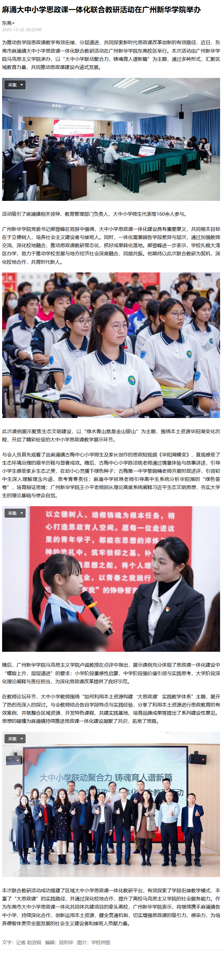 表示,将继续携手麻涌镇各中小学,持续深化合作,创新运用本土资源,健全贯通机制,切实增强思政课的吸引力、感染力,为培养德智体美劳全面发展的社会主义建设者和接班人贡献力量。