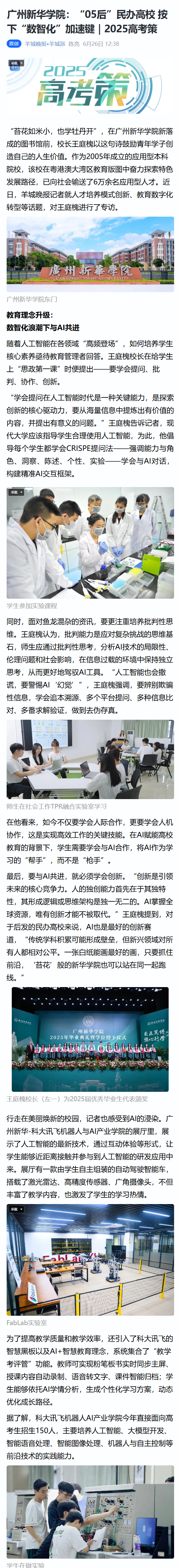 就在今年6月,学校又与华为签署全面框架合作,成立人工智能产业学院,共同构建“产学研用”一体化人才培养体系,助力人工智能技术创新与教育数字化转型。今年招生150人,将为产业升级输送高素质人才。