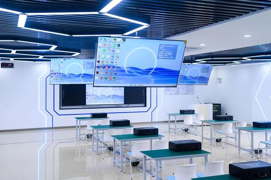 为了提高教学质量和教学效率,还引入了科大讯飞的智慧黑板以及AI+智慧教育理念,系统集合了“教学考评管”功能。教师可实现粉笔板书实时同步主屏、授课内容自动录制、语音转文字、课件智能归档;学生能够依托AI学情分析,生成个性化学习方案,动态优化成长路径。
