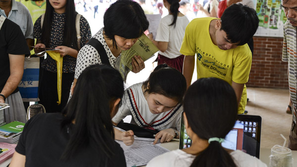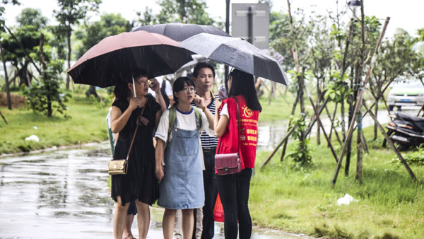 迎新的时候,总有这么一群人在奔忙,他们为迎接新生倾情付出。在校道上热情欢迎学弟学妹的学长们,总是无时无刻给予了暖心的帮助。迎新首日下雨了,但志愿者们依旧在风雨中坚守岗位,用心服务。