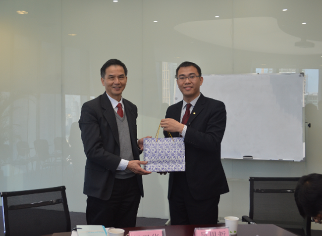 杨卫华副院长代表学院向善林金融公司赠送纪念品