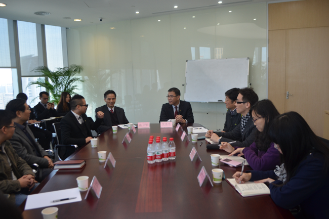 2014年12月17日上午,在杨卫华副院长的带领下,经济与贸易系主任袁持平、副主任方建国、主任助理孔岩,学院教学质量工程办公室副主任吕文菲、经贸系办公室副主任李海峰、潘怡吉,经贸系教学秘书杜碧莹和2014级金融工程专业辅导员梁昌洲一行九人前往珠江新城国际金融中心善林金融信息服务有限公司开展毕业生就业质量调研。善林金融公司华南区总经理吴思哲、善林金融广州城市经理林杨波(经济与贸易系2006级国际经济与贸易专业毕业生)、中国人民财产保险股份有限公司门店负责人梁涛(经济与贸易系2006级国际经济与贸易专业毕业生)以及善林金融公司实习生凌晓春、张彩燕(经济与贸易系2011级经济学专业应用金融方向在校生)参与调研。