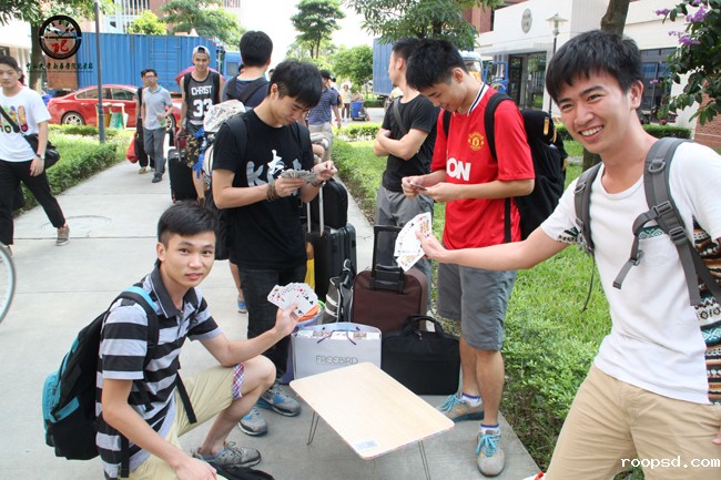 经过一个多小时的车程,2011级学生终于到达广州校区。纷纷带着行李走向自己未来生活一年的地方……