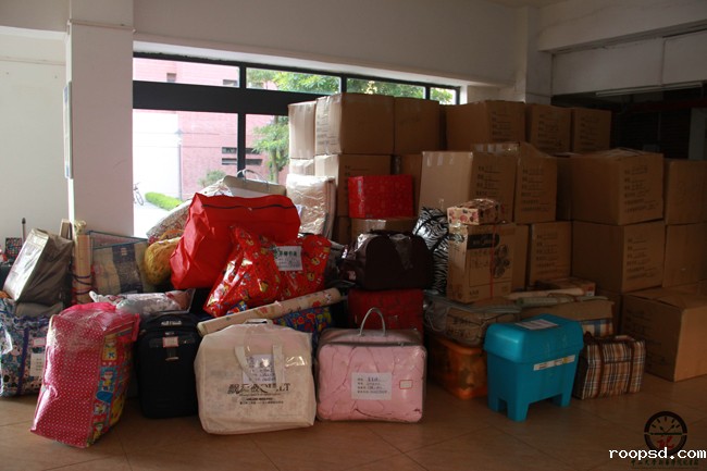 师兄师姐们的行李等待被装载上车。或许在他们的心里带走的不仅是一件件生活行李,更是一份珍贵的回忆!