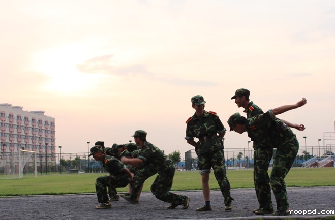 在美丽夕阳下 ,共甘苦,同患难,有罚一起笑着来蛙跳