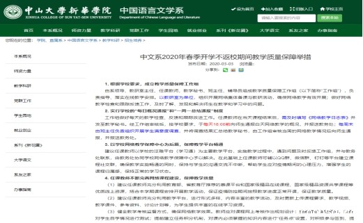 《中文系2020年春季学期开学不返校期间教学质量保障举措》