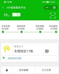 新生通过“iXH”小程序“迎新服务”功能即可查询入学手续的办理进度,查询宿舍安排和各校区地图,便对报到路线“心中有数”。结合疫情防控要求,新生需进行来校报到前14天的“报平安”打卡,使学校提前掌握学生的健康状况。