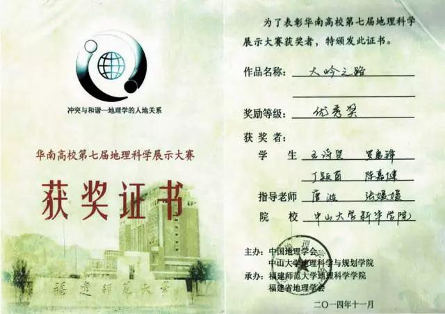我系学生获得2014年第七届华南地理科学展示大赛优秀奖