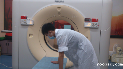 学生在DR室为病人摆位