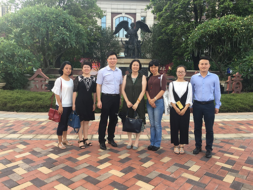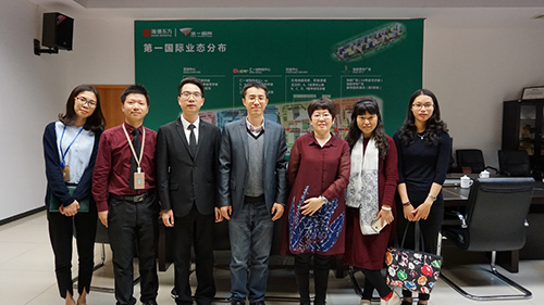 管理学院副院长杨宇帆(左起第四位)带领市场营销专业教师走访世联行公司代理的东莞楼盘,了解实习生的工作及生活情况。