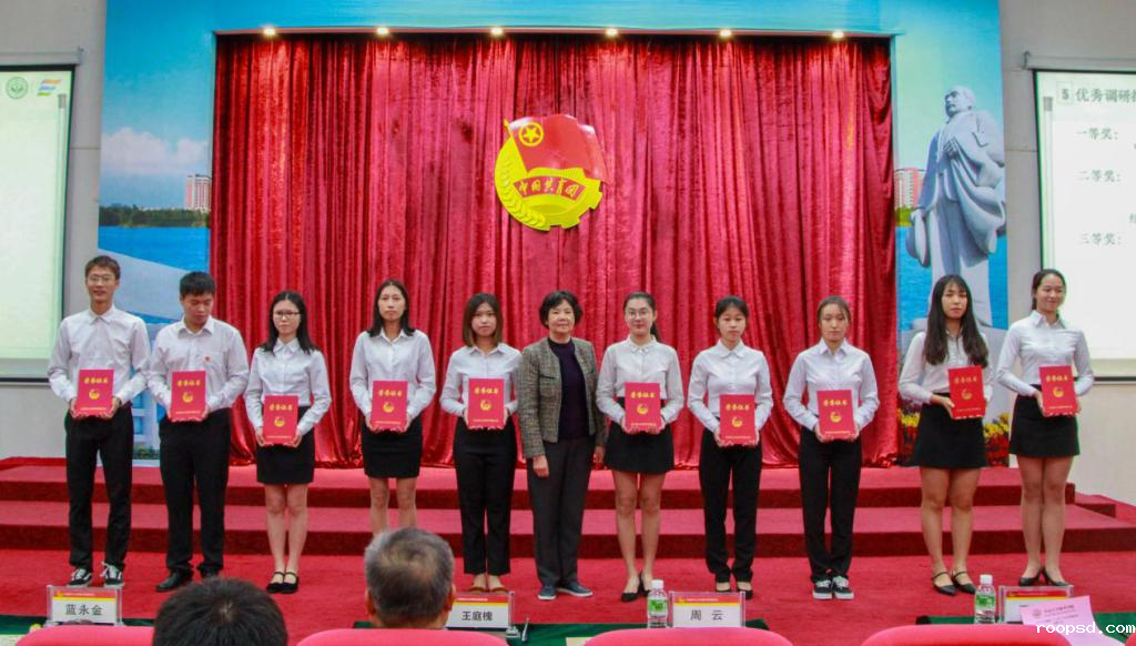 图:我校召开2018年暑期“三下乡”社会实践活动表彰大会,学校党委周云书记(中左)为“优秀调研报告奖”获奖代表颁奖