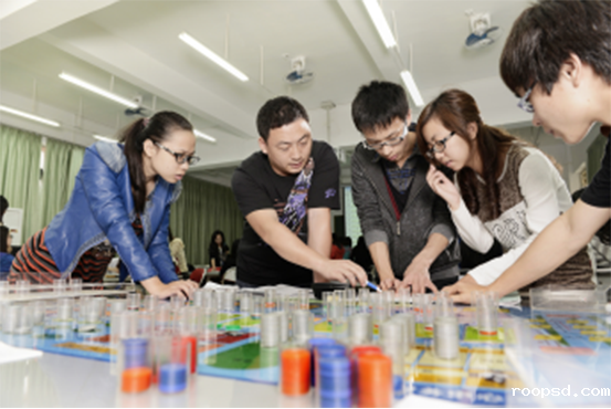 管理学系教师在实验室指导学生进行ERP沙盘实战演练