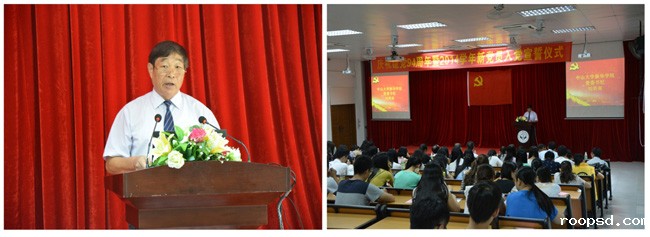 中山大学bv伟德体育app官网学院举行庆祝建党94周年暨新党员入党宣誓仪式,学院党委书记刘美南同志出席会议并讲话。