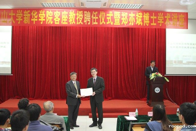 郑亦斌博士受聘为我院客座教授,王庭槐院长亲自颁发聘书