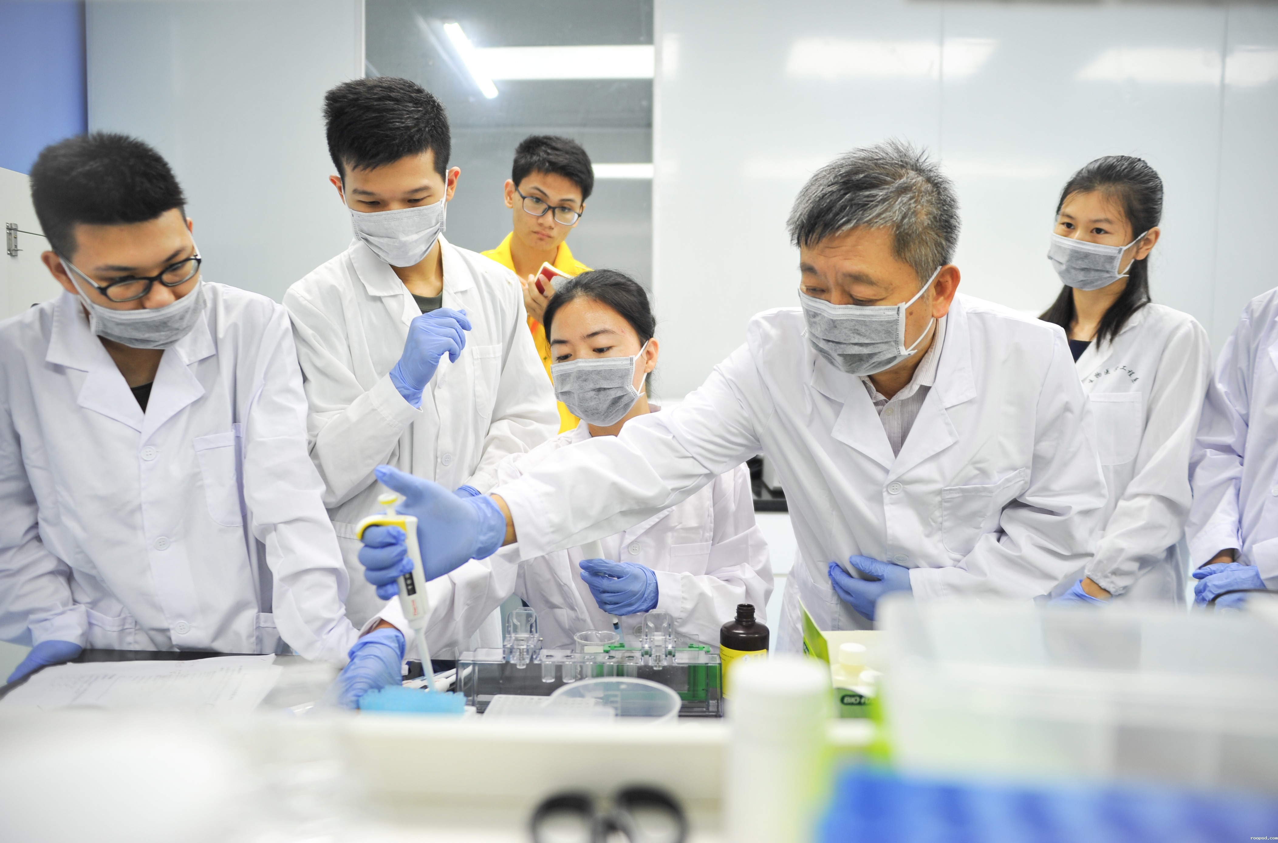 王庭槐校长在我校首间集教学、科研、临床应用“三位一体”实验室为学生做实验示范并讲解操作要领