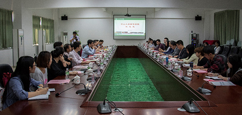 紧接着,我校校长办公室潘麒羽老师向来宾们简要介绍了学校概况、办学宗旨、招生情况、师资队伍、办学历程、学校发展等基本情况,重点介绍了在“学术强校、质量立校、特色兴校、开放办校”发展战略下,我校在特色学科建设、教育教学改革、人才培养模式创新、提升学术影响力方面所做的各项工作及取得的成绩。