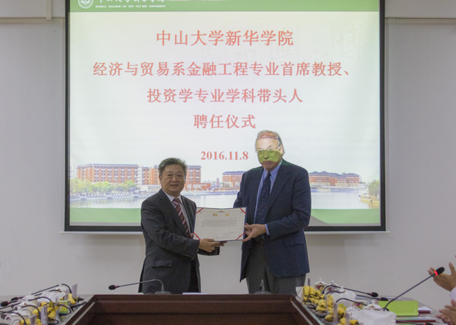 11月8日,我院在东莞校区举行敦聘世界经济学家、原伦敦政治经济学院金融与会计系主任Prof.Ron Anderson为我院经济与贸易系金融工程专业首席教授、投资学专业学科带头人聘任仪式。