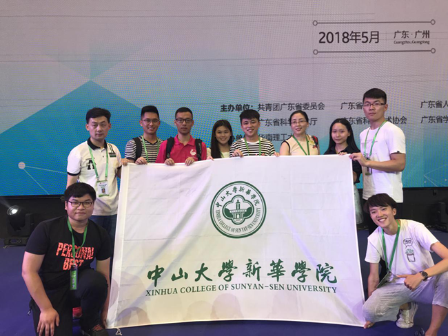 瞿文政(后排右四)所在的《易宿》团队获2018年挑战杯·创青春”广东大学生创业大赛创业计划赛金奖
