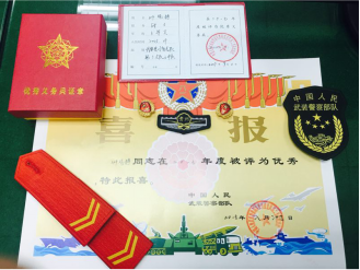 服兵役期间她的表现突出,获得了不少荣誉。2015年12月25日,获团“嘉奖”。2017年8月29日,获得“优秀义务兵”称号和连“嘉奖”,这些奖项都为她努力工作的精神给予了充分的肯定。