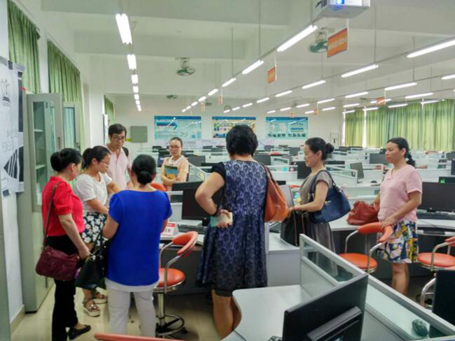 10月28日上午,广东培正学院财务与会计系主任刘晓瑜率领财会实验教研组一行6人,来访我院东莞校区财务与会计系(下称财会系)进行参观交流,双方就财会类实验室建设、课程安排、软件购置、使用方案等事宜进行深入地讨论与沟通。财会系副主任李安兰、办公室主任殷燕子、实验室管理员傅素青陪同参观并作介绍。