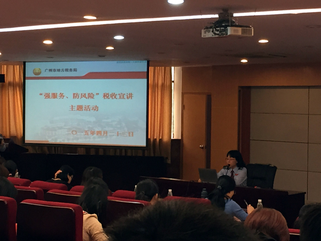 4月23日下午,我院财务工作部副部长张华英、部长助理李宝玲带领财务工作部全体工作人员前往暨南大学参加由广东省天河区地税局主办的关于开展“强服务、防风险”税收宣讲主题活动。本次活动学习内容包括“金税三期”系统操作及新旧系统对比;外籍人员个人所得税培训及外籍个人纳税评估案例讲解。