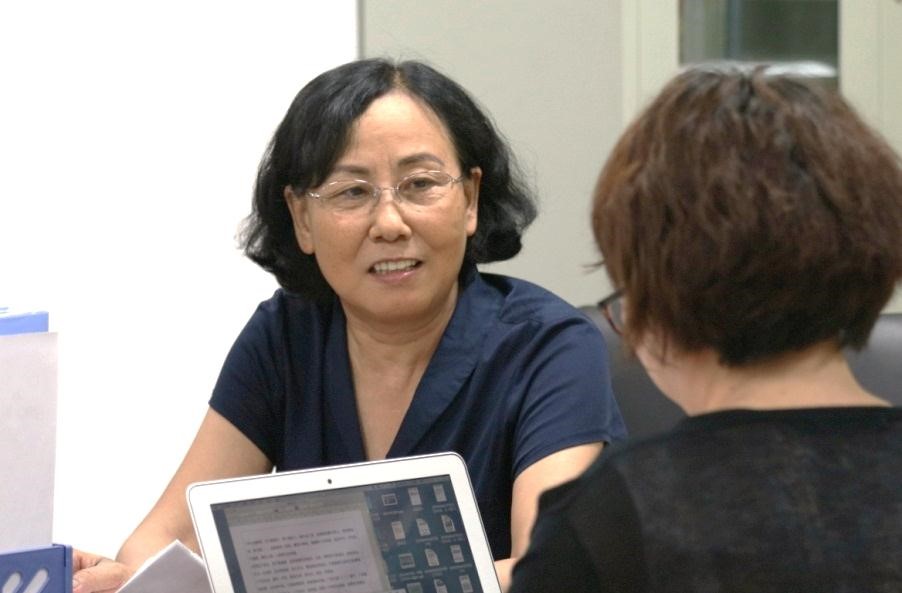 60岁,李岚教授接受宣传与新闻中心记者采访