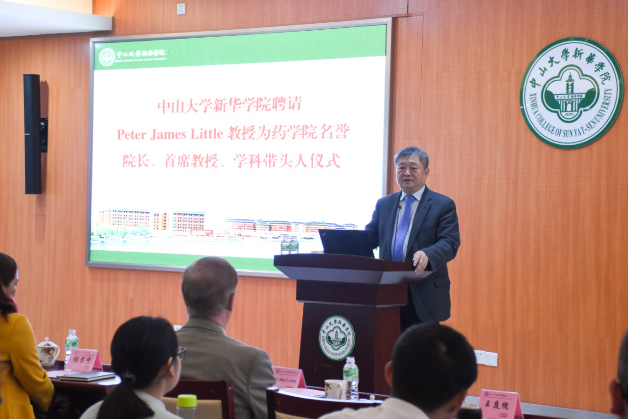 学院(以下简称“我校”)聘请Peter James Little教授为药学院名誉院长、首席教授、学科带头人仪式在广州校区第一会议室举行。王庭槐校长出席仪式为Peter James Little教授颁发聘书。