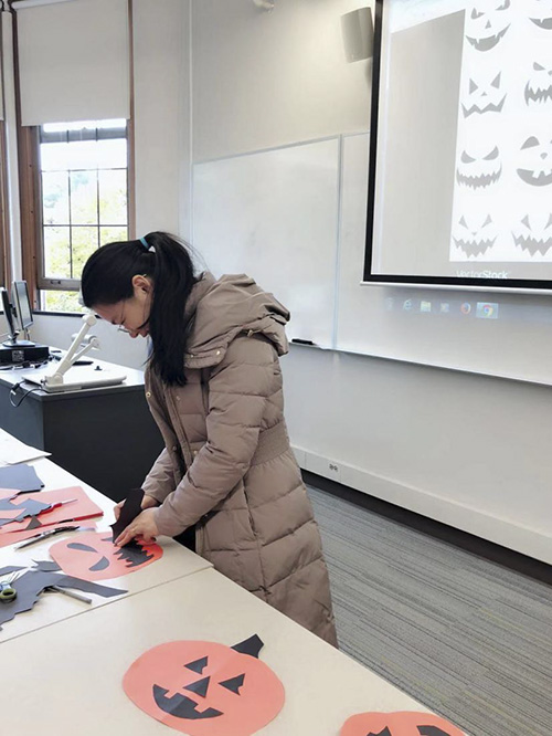 此外,为了帮助国际生提高英语水平,如口语及课业问题,拿大国际学院成立了英语学习中心(ELC)。访问学者也可以去ELC找美国学生练习口语,参加文化活动。比如万圣节的南瓜脸制作活动就会带领中国学生去附近居民区体验万圣节Treat or Trick等。