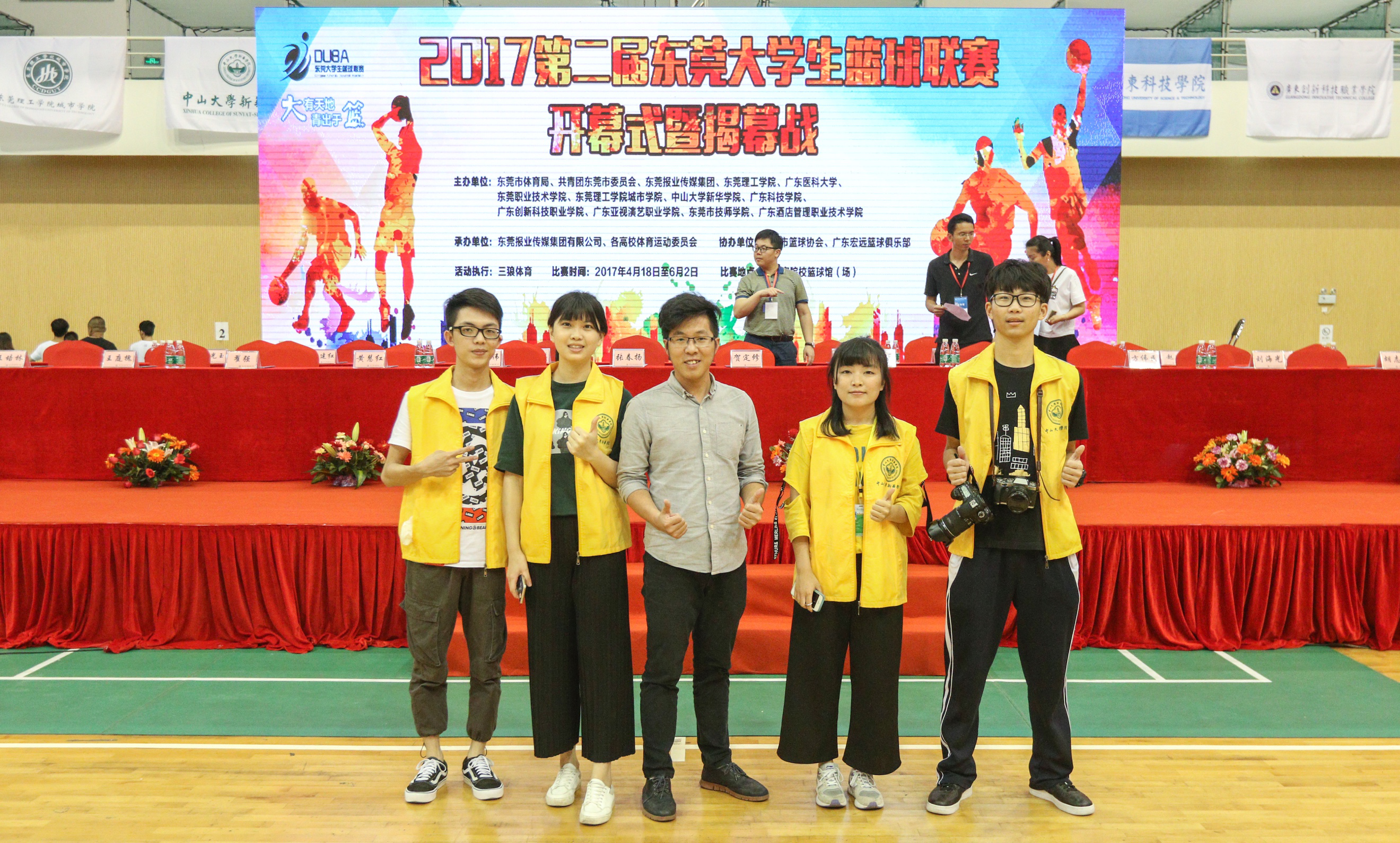 李波老师与学生记者参与东莞大学生篮球联赛报道